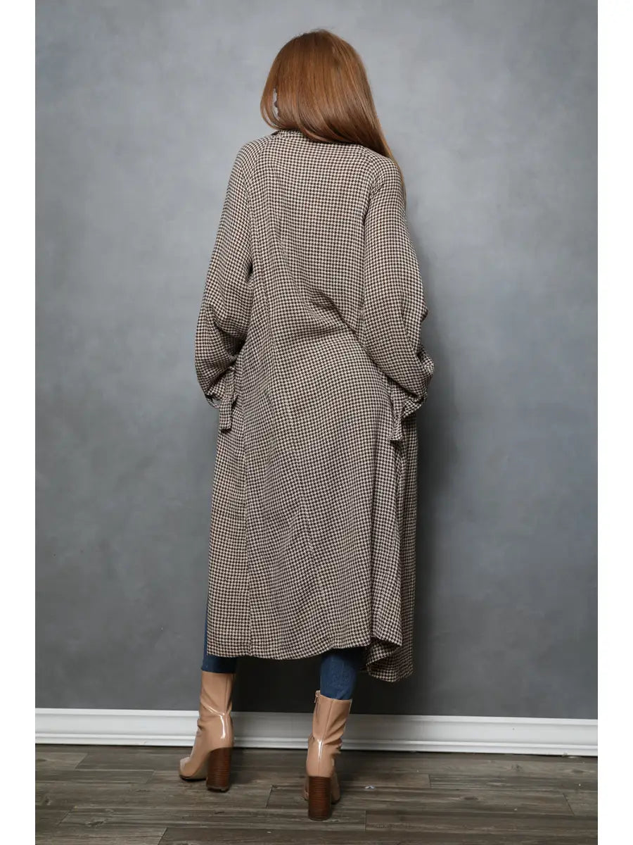 Embrace the classic aesthetic with our Plaid Trench Coat, a standout piece from Angie. This trench coat is designed for the everyday, with a beautiful brown plaid pattern that exudes a well-traveled, romantic spirit. Featuring a junior fit and long sleeves, it's perfect for adding a touch of bohemian charm to your outerwear collection. Rooted in vintage influences, this coat is not just a clothing item, but a piece of wearable art. Bold, poetic, yet instantly wearable - that's the Angie promise.