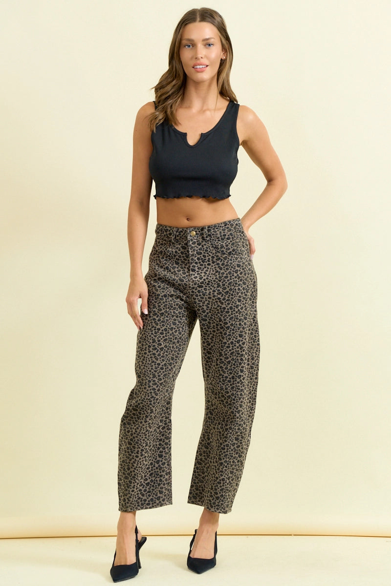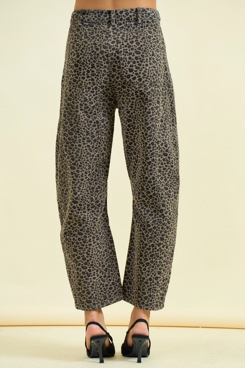 Leopard Print Barrel Jeans